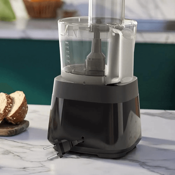 Multiprocessador compacto e potente para triturar, picar, misturar e emulsificar — ideal para preparar molhos, sopas, batidos e picados rápidos.