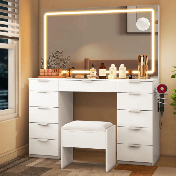 Penteadeira com Espelho LED — Beleza, Organização e Estilo