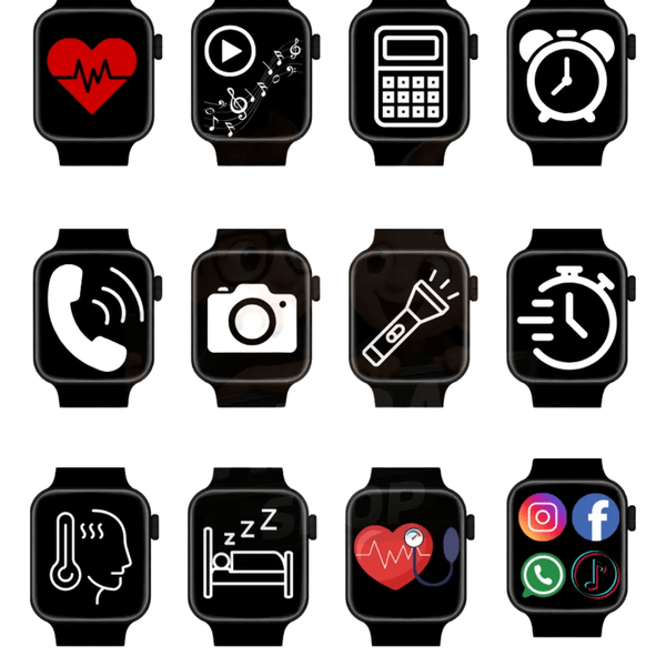 Passos, ritmo cardíaco, calorias, sono e alertas de sedentarismo — além de cronómetro, lanterna, assistente de voz, previsão do tempo e controlo remoto da câmara.