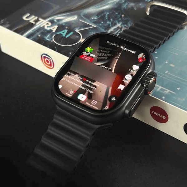 Smartwatch Ultra 5G — conectividade, estilo e funcionalidades num só dispositivo.